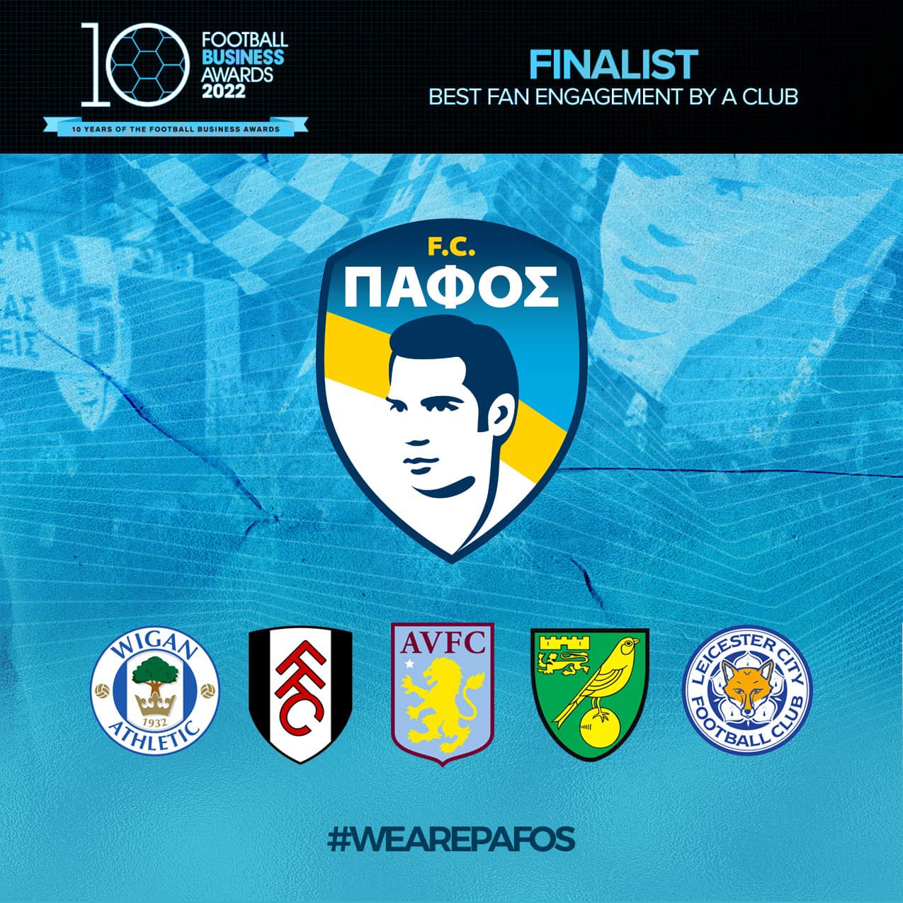 The judging panel consists of experienced professionals, including Chief Executives of Football Clubs, Professional Football Associations & Grassroots Football Organisations.Pafos FC is honored to be the pioneer among the Cypriot football teams to be selected as a finalist for the club’s achievements. The club has set the goal to connect with our audience and help our supporters to gain the feeling of being a part of something big and it was recognized for that. Our work with the fans and the community of the city of Paphos through the “Pafos FC Family” and “One Team – One Town” campaigns, in which we highlighted the importance of unity and establishing close connections, has been shortlisted in the highly competitive category, and will go up against campaigns from the likes of Aston Villa FC, Fulham FC, Leicester City FC, Norwich City FC and Wigan Athletic FC.